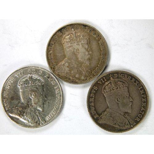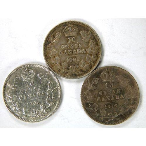 1902, 1906 and 1910. Three pale to lightly toned pieces, all VF