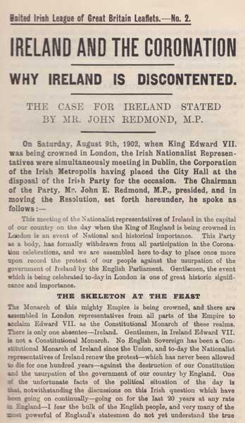 1902-1907. Speeches by John Redmond, pamphlets collection from his son's library.