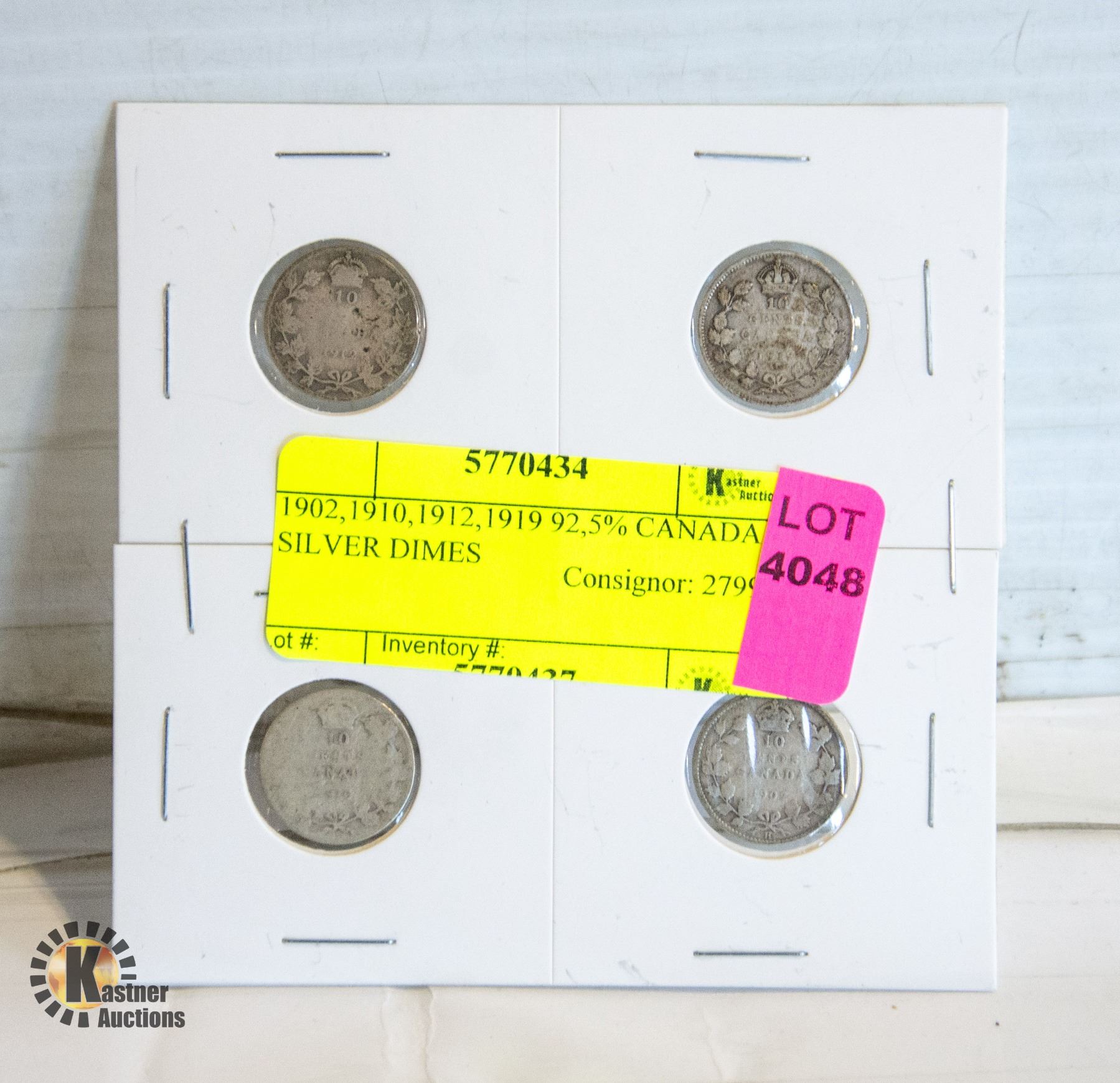1902,1910,1912,1919 92,5% CANADA SILVER DIMES