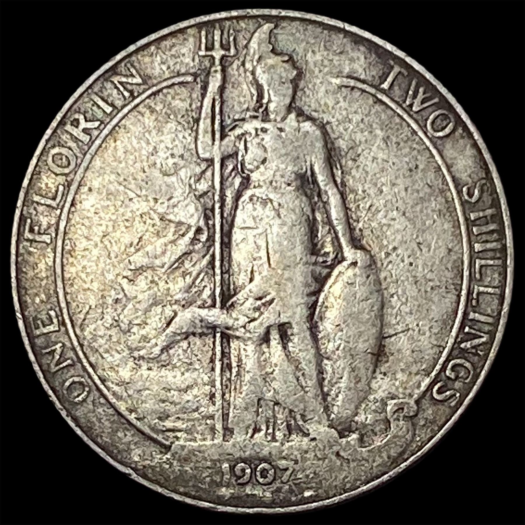 1902-1910 Great Britain Silver 1 Florin-Edward VII NEARLY UNCIRCULATED