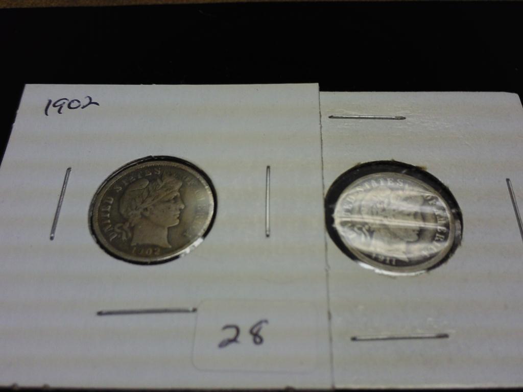 1902 & 1911 BARBER DIMES (BOTH VERY GOOD+)