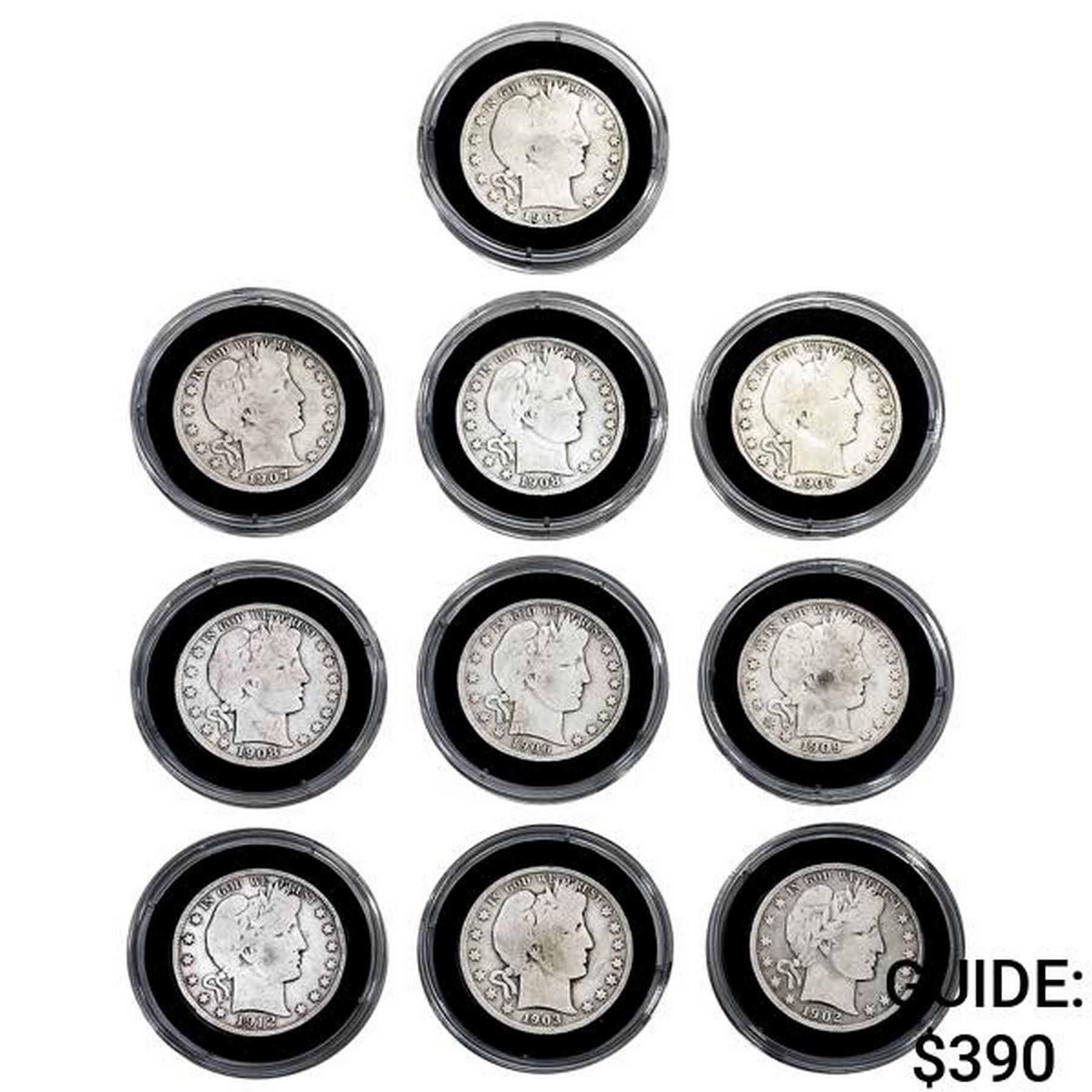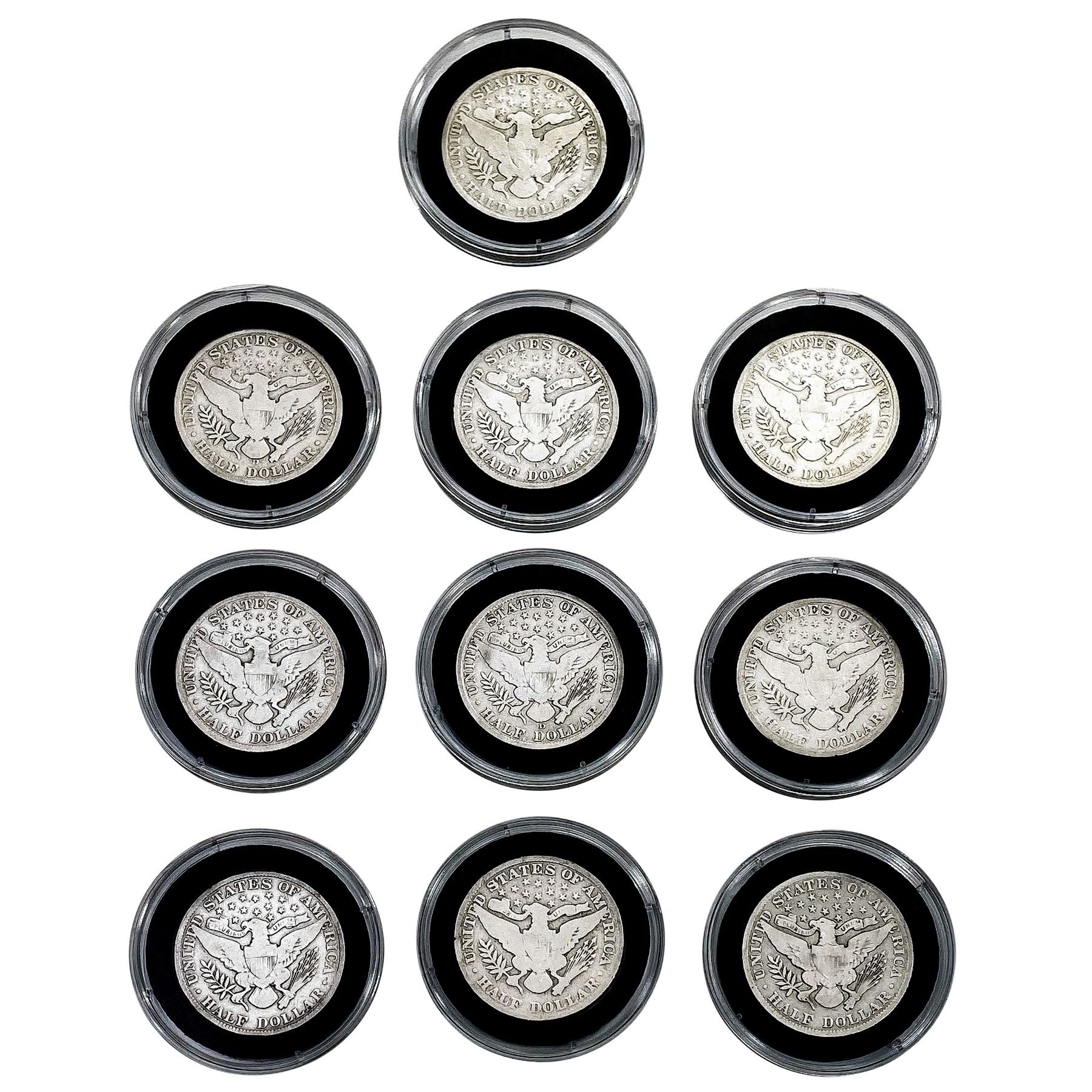 1902-1912 Varied Date Barber Half Dollars [10 Coin