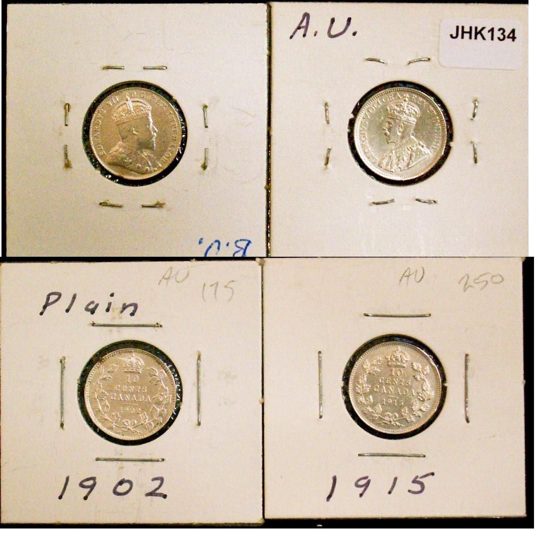 1902 & 1915 10¢. Lot of 2 coins both EF.