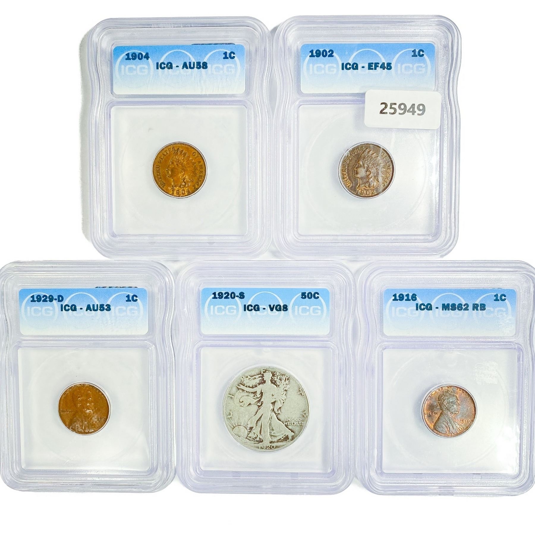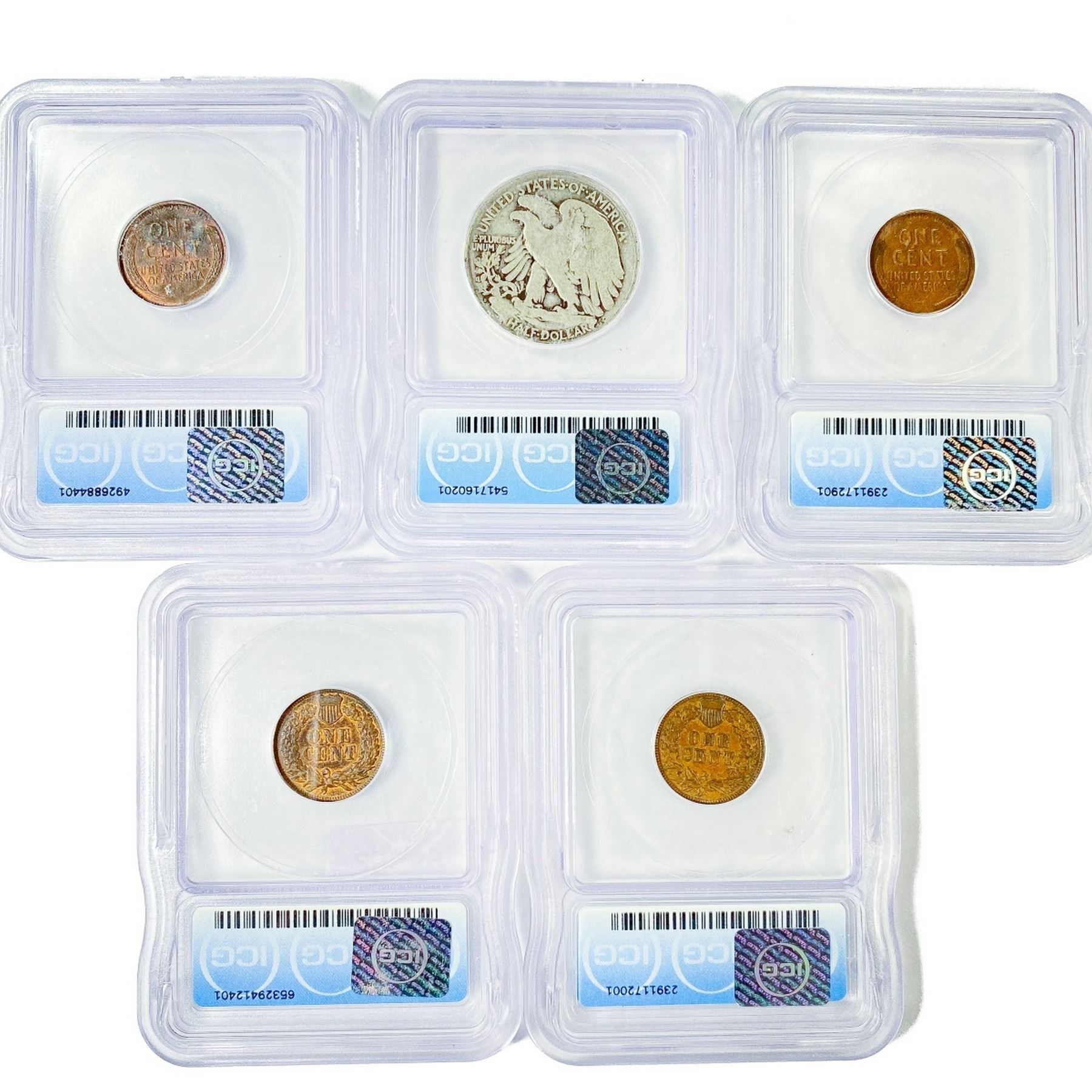 1902-1929 Set (5) 4 Pennies, 1 Walking Lib. 50C