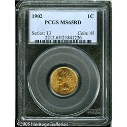 <B>1902 1C MS65 Red PCGS.</B></I> A beautiful olive-gold Gem. The strike is exquisite and the cartwheel luster is potent. A couple of subtle gray flecks on the central reverse are inconspicuous. The base of the 1 in the date is repunched, does not exactly match any photos in Richard Snow's 1900-1909 reference. Lot:5250