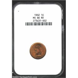 1902 1C MS66 Red NGC. Intense fire-red luster glows over both sides of this captivating Indian Cent. Blushes of pale power-blue color are noted atop a few of the raised design elements, but we can find no distracting abrasions or carbon flecks. A truly gorgeous example for the premium quality Gem collector.From the Joseph P. Gorrell Collection. Important notice: We expect to be auctioning lots at the rate of 200-250 per hour. Sometimes eBay Premier live bid software cannot keep up with that pace, so we strongly recommend that you place a realistic proxy bid now as insurance to avoid disappointment. Also please note that all Heritage/CAA lots purchased through eBay Premier carry a 20% Buyer's Premium. Please make sure you read the Terms and Conditions.