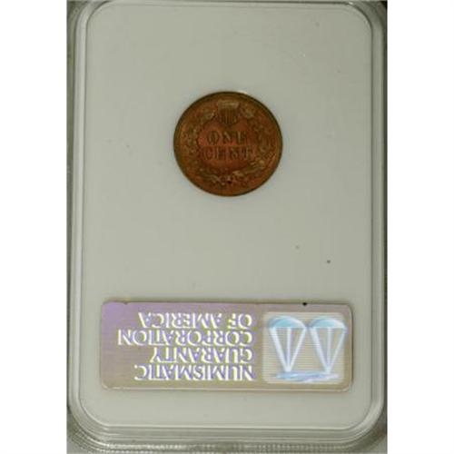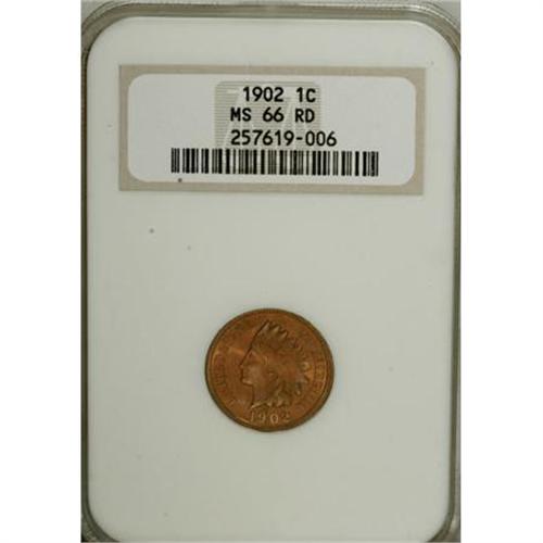 <B>1902 1C MS66 Red NGC.</B></I> Dazzling fire-red luster bathes this beautifully preserved and precisely struck Premium Gem. The reverse field has a slight orange peel texture, as made.<BR><BR><B>Coin Engraver:</B> James B. Longacre<BR><BR><b>Shipping:</b> Coins & Currency (<a target="_blank" href="http://www.heritageauctions.com/common/shipping.php">view shipping information</a>)