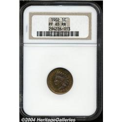 <B>1902<1C> PR65 Red and Brown NGC.</B></I> Crimson, tan, and gold toning overlays lustrous surfaces that are virtually unmarked. Most of the design elements are boldly impressed. Population: 40 in 65, 23 finer (6/04). <BR><BR><B>Important notice:</B> Heritage usually auctions material at the rate of 200-250 lots per hour. On some occasions eBay Live bid software or the Internet may not be able to keep up with the pace of the auction. We recommend placing a realistic absentee bid now as insurance to avoid disappointment. Occasionally the auctioneer may eliminate or reject an eBay Live bid, and the auctioneer may also reopen a lot after the close of the eBay live bidding (usually because we missed an audience bid), and may reject your bid even if it shows you as the winning bidder. By bidding via eBay Live, you agree that Heritage may award the lot to another bidder at its sole discretion under the circumstances described above or any other reasonable circumstances. Since eBay bids are not shown to us until we open the lot on the floor, we treat those bids just like floor bids. In most cases the floor responds before the eBay bid is presented to us, due to Internet lag time, so for consistency we have made it a policy that floor bids are always considered first over tie eBay live bids. Also please note that all Heritage lots purchased through eBay Live carry a 20% Buyer's Premium. Please make sure you read the Terms and Conditions before you bid. </span></font></tr></table></td></tr></table>