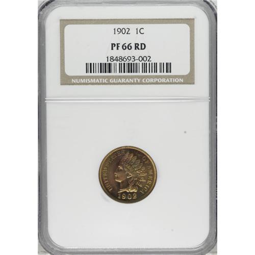 <B>1902 1C PR66 Red NGC.</B></I> Bright copper-gold surfaces display a splash or two of light crimson and lime-green. All of the design elements are crisply defined, and close inspection reveals no mentionable abrasions. A handful of tiny flecks are noted on the reverse. Census: 20 in 66, 3 finer (4/07).<BR><BR><b>Shipping:</b> Coins & Currency (<a target="_blank" href="http://www.heritageauctions.com/common/shipping.php">view shipping information</a>)