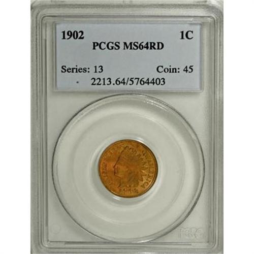 <B>1902 1C MS64 Red PCGS.</B></I> PCGS Population (223/171). NGC Census: (116/211). Mintage: 87,376,720. Numismedia Wsl. Price for NGC/PCGS coin in MS64: $142. (#2213)<BR><BR><B>Coin Engraver:</B> James B. Longacre<BR><BR><b>Shipping:</b> Coins & Currency (<a target="_blank" href="http://www.heritageauctions.com/common/shipping.php">view shipping information</a>)