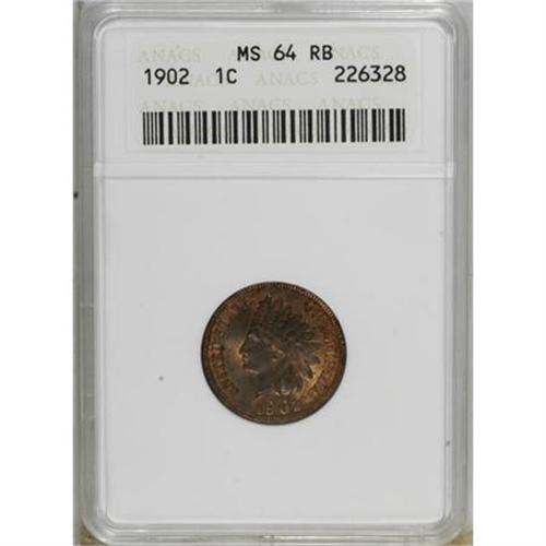<B>1902 1C MS64 Red and Brown ANACS.</B></I> NGC Census: (231/163). PCGS Population (285/67). Mintage: 87,376,720. Numismedia Wsl. Price for NGC/PCGS coin in MS64: $85. (#2212)<BR><BR><B>Coin Engraver:</B> James B. Longacre<BR><BR><b>Shipping:</b> Coins & Currency (<a target="_blank" href="http://www.heritageauctions.com/common/shipping.php">view shipping information</a>)
