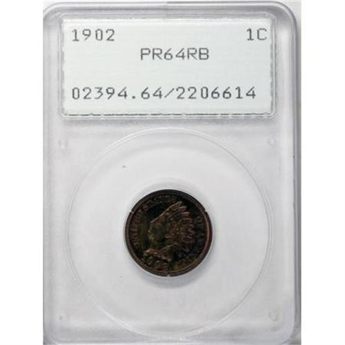 <B>1902 1C PR64 Red and Brown PCGS.</B></I> . PCGS Population (89/66). NGC Census: (50/64). Mintage: 2,018. Numismedia Wsl. Price for NGC/PCGS coin in PR64: $240. (#2394)<BR><BR><B>Coin Engraver:</B> James B. Longacre<BR><BR><b>Shipping:</b> Coins & Currency (<a target="_blank" href="http://www.heritageauctions.com/common/shipping.php">view shipping information</a>)