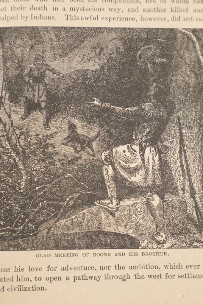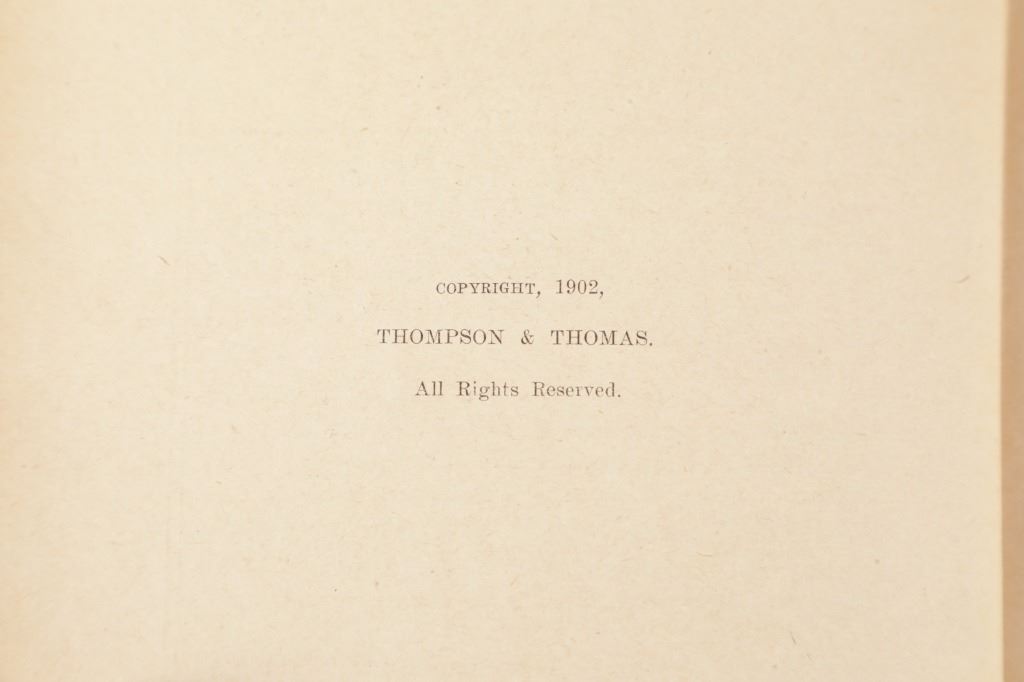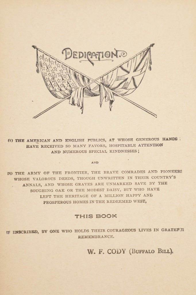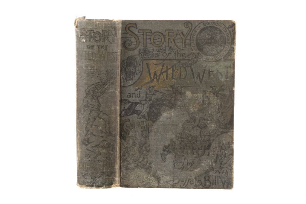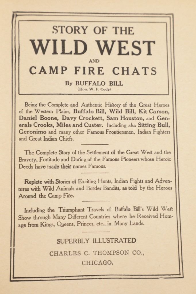 For your consideration is a First Edition of “Story of the Wild West and Camp Fire Chats” by Buffalo Bill, 1902, publisher Charles C. Thompson CO., Chicago. A full and complete history of the renowned pioneer quartette: Daniel Boone, Davy Crockett, Kit Carson, and Buffalo Bill, as well as Sam Houston, Generals Crooks and Miles and also George Armstrong Custer. Full of graphic descriptions of wild life and thrilling adventures by famous heroes of the frontier as well as Sitting Bull, Geronimo and many other famous frontiersmen, Indian fighters and Great Indian Chiefs. The book is a record of exciting events on the western borders pushed westward to the sea; massacres, desperate battles, extraordinary bravery, marvelous fortitude, astounding heroism, grand hunts, savage encounters, adventures by flood and field, rollicking anecdotes, tales of sorrow, droll stories, curious escapades, and a melange of incidents that make up the melodrama of civilization in its march over mountains and prairies to the Pacific, including a description of Buffalo Bill's conquests in England with his Wild West exhibition where royalty from all the european nations, paid him a generous homage and made his wonderful show the greatest success of modern times. William Frederick Cody (1846-1917), better known as Buffalo Bill, was a larger than life American soldier, Army scout, bison hunter, and showman, his experiences in the early west involved the settlement of the plains, the Pony Express, a military guide, hunting buffalo and interaction with the Indians. He later became world-famous for Buffalo Bill's Wild West, a touring show which traveled around the United States, Great Britain, and Continental Europe. Audiences were enthusiastic about seeing a piece of the American West. The blue cloth bound gold gilt stamped illustrated hardcover features an illustrated cover with gilt lettering adorning the spine and cover of the book. Covers and edges exhibit scuffing, staining, and fading, loose spine still attached. Intact pages exhibit age tanning and foxing throughout. Measures 5.875"W x 8.375"L x 1.75"D, weight is 2lb, 4oz.