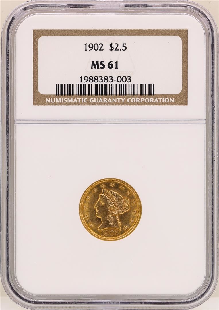 One 1902 $2 1/2 Liberty Head Quarter Eagle Gold Coin NGC MS61. NGC Certified.