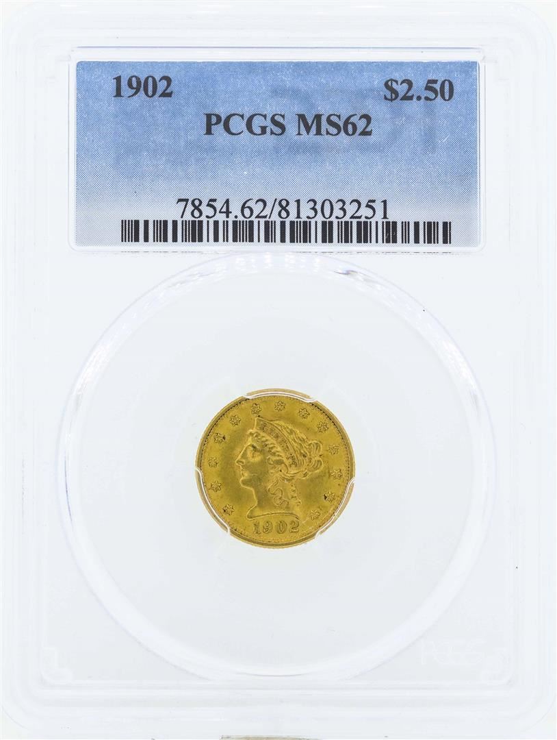 One 1902 $2 1/2 Liberty Head Quarter Eagle Gold Coin PCGS MS62. PCGS Graded.