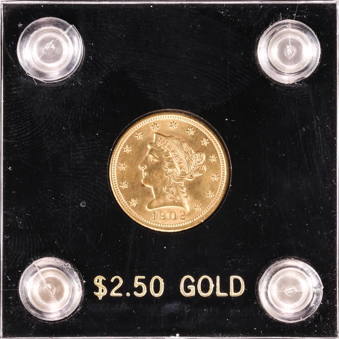 One 1902 $2 1/2 Liberty Head Quarter Eagle Gold Coin.