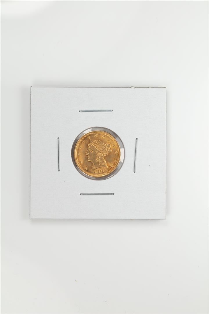 One 1902 $2 1/2 Liberty Head Quarter Eagle Gold Coin.