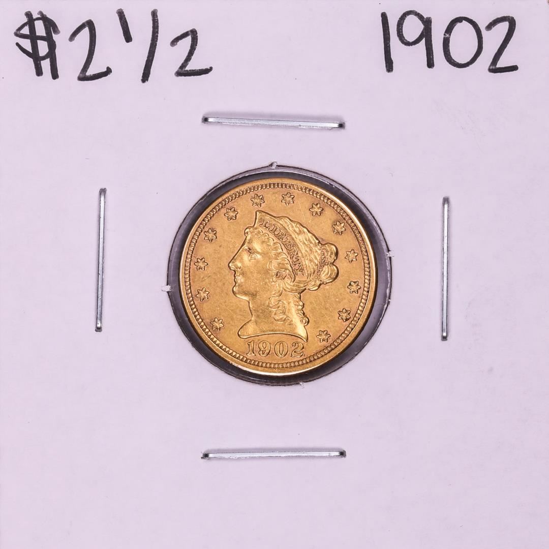 One 1902 $2 1/2 Liberty Head Quarter Eagle Gold Coin.