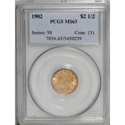 <B>1902<$2 1/2> MS63 PCGS.</B></I> Deep orange-gold in color, with a needle-sharp strike and frosty luster.