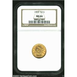 <TABLE cellSpacing=0 cellPadding=0 width="100%" bgColor=#000000 border=0><TBODY><TR><TD width="100%"><TABLE cellSpacing=1 cellPadding=3 width="100%" border=0><TBODY><TR><TD width="100%" bgColor=#79735c><FONT face=arial color=#ffffff size=3><B>Description</B> </FONT></TD></TR><TR><TD width="100%" bgColor=#ffffff><FONT face=arial size=2><B>1902 $2 1/2 MS66 NGC.</B></I> Sharply struck and untoned, with bright yellow-gold surfaces, essentially pristine except for two or three tiny tick marks on Liberty's jaw. Exceptional eye appeal. Population: 80 in 66, 25 finer (7/03). </FONT></TD></TR></TBODY></TABLE></TD></TR></TBODY></TABLE><BR><A name=PricesRealized></A><TABLE cellSpacing=0 cellPadding=0 width="100%" bgColor=#000000 border=0><TBODY><TR><TD width="100%"><TABLE cellSpacing=1 cellPadding=3 width="100%" border=0><TBODY><TR><TD width="100%" bgColor=#79735c><A name=PR><FONT face=arial color=#ffffff size=3><B>Previous Prices from Heritage Auctions</B> </FONT></A></TD></TR><TR><TD bgColor=#f6f6ed><TABLE cellSpacing=0 cellPadding=0 width="100%" border=1><TBODY><TR><TD align=middle width="33%"><B>Date</B></TD><TD align=middle width="33%"><B>Service</B></TD><TD align=middle width="33%"><B>Price</B></TD></TR><TR bgColor=whitesmoke><TD width="33%"><B>10/01/2001</B></TD><TD width="33%">PCGS</TD><TD width="33%">$1,668.00</TD></TR><TR bgColor=whitesmoke><TD width="33%"><B>01/01/1990</B></TD><TD width="33%">PCGS</TD><TD width="33%">$8,800.00</TD></TR><TR bgColor=whitesmoke><TD width="33%"><B>10/01/1995</B></TD><TD width="33%">PCGS</TD><TD width="33%">$2,860.00</TD></TR><TR bgColor=whitesmoke><TD width="33%"><B>05/01/1990</B></TD><TD width="33%">PCGS</TD><TD width="33%">$9,350.00</TD></TR><TR bgColor=whitesmoke><TD width="33%"><B>03/04/2003</B></TD><TD width="33%">NGC</TD><TD width="33%">$1,667.50</TD></TR><TR bgColor=whitesmoke><TD width="33%"><B>12/10/2002</B></TD><TD width="33%">NGC</TD><TD width="33%">$1,667.50</TD></TR><TR bgColor=whitesmoke><TD width="33%"><B>08/09/2000</B></TD><TD width="33%">NGC</TD><TD width="33%">$3,220.00</TD></TR></TBODY></TABLE></TD></TR><TR><TD bgColor=#ffffff><FONT face=arial size=1 ?>PLEASE NOTE: All prices realized reflect the final hammer price PLUS the buyer's premium in auctions that charge a buyer's premium. Each item has a notation at the top of the listing indicating whether that lot included a buyer's premium. Example: A item that sells with a final hammer price of $100 and a 20% buyer's premium will display with a price realized of $120. All information listed is intended to be as accurate as possible, but errors are possible. Please use this guide carefully and inform us of any inaccuracies. </FONT></TD></TR></TBODY></TABLE></TD></TR></TBODY></TABLE><BR><TABLE cellSpacing=0 cellPadding=0 width="100%" bgColor=#000000 border=0><TBODY><TR><TD width="100%"><TABLE cellSpacing=1 cellPadding=3 width="100%" border=0><TBODY><TR><TD width="100%" bgColor=#79735c colSpan=6><FONT face=arial color=#ffffff size=3><B>Price Guide*</B> </FONT></TD></TR><TR bgColor=#f6f6ed><TD align=middle><B>Grade</B> </TD><TD align=middle><B>Coin World<BR>(Trends)</B> </TD><TD align=middle><B>Numismedia<BR>Retail</B> </TD><TD align=middle><B>Numismedia<BR>Wholesale</B> </TD><TD align=middle><B>Coin<BR>Universe</B> </TD><TD align=middle><B>Heritage<BR>Value Index</B> </TD></TR><TR bgColor=#ffffff><TD align=middle>65</TD><TD align=right>---</TD><TD align=right>---</TD><TD align=right>$1,180.00</TD><TD align=right>$1,575.00</TD><TD align=right>$1,111.83</TD></TR><TR style="FONT-WEIGHT: bold" bgColor=#cccfdd><TD align=middle>66</TD><TD align=right>---</TD><TD align=right>---</TD><TD align=right>$1,800.00</TD><TD align=right>$2,200.00</TD><TD align=right>$1,822.67</TD></TR><TR bgColor=#ffffff><TD align=middle>67</TD><TD align=right>---</TD><TD align=right>---</TD><TD align=right>$4,650.00</TD><TD align=right>$6,350.00</TD><TD align=right>$5,472.50</TD></TR><TR bgColor=#ffffff><TD colSpan=6><FONT size=1>*All information listed is intended to be as accurate as possible, but errors are possible. No item may be returned or refused based on this information which is provided as a service to our customers. You should contact each pricing source directly to determine the accuracy of this information. </FONT></TD></TR></TBODY></TABLE></TD></TR></TBODY></TABLE><BR><TABLE cellSpacing=0 cellPadding=0 width="100%" bgColor=#000000 border=0><TBODY><TR><TD width="100%"><TABLE cellSpacing=1 cellPadding=3 width="100%" border=0><TBODY><TR><TD width="100%" bgColor=#79735c><FONT face=arial color=#ffffff size=3><B>Population Guide</B> </FONT></TD></TR><TR bgColor=#ffffff><TD align=middle><!-- Begin Output of Population Grid--><TABLE cellSpacing=0 cellPadding=0 width="100%" border=0><TBODY><TR><TD vAlign=center><TABLE cellSpacing=0 width="100%" border=1 cellsadding="3"><TBODY><TR><TD vAlign=center><TABLE cellSpacing=0 cellPadding=3 width="100%" border=1><TBODY><TR><TD vAlign=center align=middle bgColor=#f0f1e8 colSpan=2 <CENTER><FONT face=Arial size=2><B>PCGS Pop </B></FONT><CENTER></CENTER></TD><TD vAlign=center align=middle bgColor=#f0f1e8 colSpan=2><CENTER><FONT face=Arial size=2><B>NGC Pop</B></CENTER></FONT></TD></TR><TR><TD vAlign=center><FONT face=Arial size=2>(66)</FONT> </TD><TD vAlign=center align=right><FONT face=Arial size=2>63</FONT> </TD><TD vAlign=center><FONT face=Arial size=2>(66)</FONT> </TD><TD vAlign=center align=right><FONT face=Arial size=2>80</FONT> </TD></TR><TR><TD vAlign=center><FONT face=Arial size=2>(>66)</FONT> </TD><TD vAlign=center align=right><FONT face=Arial size=2>9</FONT> </TD><TD vAlign=center><FONT face=Arial size=2>(>66)</FONT> </TD><TD vAlign=center align=right><FONT face=Arial size=2>25</FONT> </TD></TR></TBODY></TABLE></TD></TR></TBODY></TABLE></TD></TR></TBODY></TABLE><!-- End Output of Population Grid--> Important notice: Heritage usually auctions material at the rate of 200-250 lots per hour. On some occasions eBay Live bid software or the Internet may not be able to keep up wi