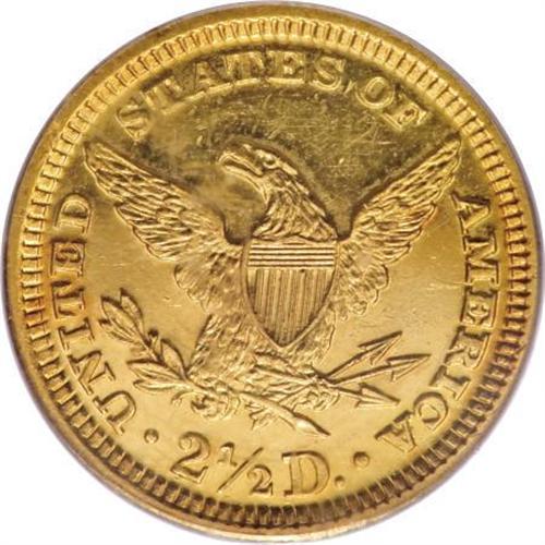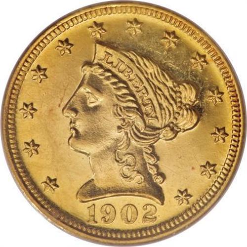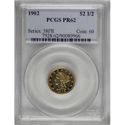 <B>1902 $2 1/2 PR62 PCGS.</B></I> A highly attractive proof with bright yellow surfaces. The fields are fully mirrored around extremely bold devices on both sides. The obverse and reverse surfaces have some minor abrasions, as expected for the grade, but the overall appearance is still remarkable. An ideal candidate for the type collector.<BR><BR><B>Coin Engraver:</B> Christian Gobrecht<BR><BR><b>Shipping:</b> Coins & Currency (<a target="_blank" href="http://www.heritageauctions.com/common/shipping.php">view shipping information</a>)