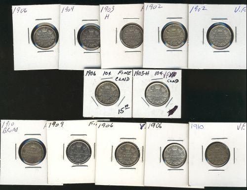 1902 (2), 1903H (2), 1904, 1906 (4), 1909 LL, 1910 (2). A nice lot of 12 pieces F-12 or better.