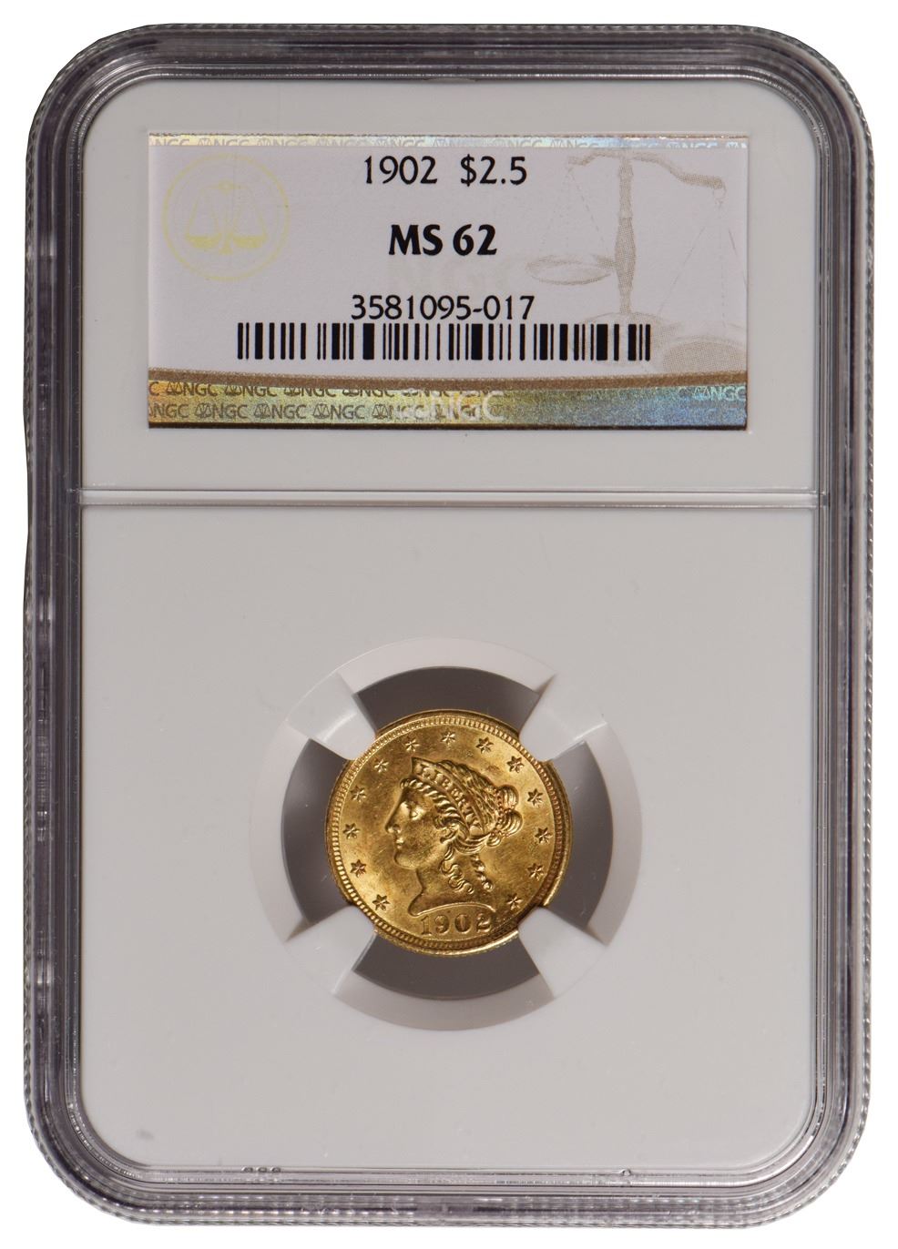 One 1902 $2.5 Liberty Quarter Eagle Gold Coin NGC MS62.