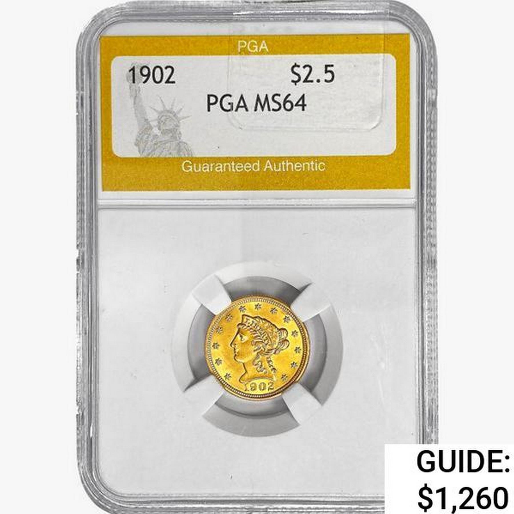 1902 $2.50 Gold Quarter Eagle PGA MS64