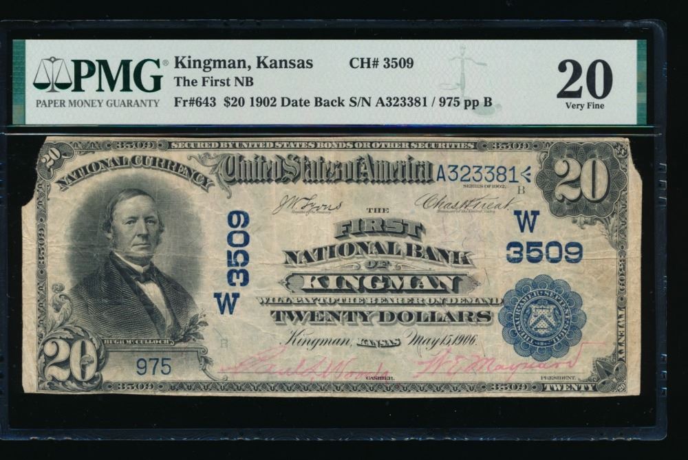 One 1902 $20 Kingman National Bank Note PMG 20.