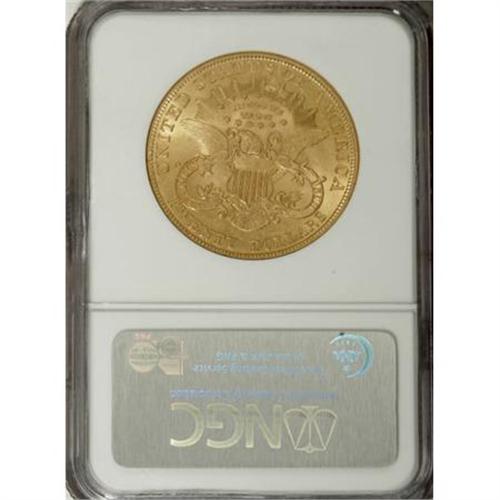 <B>1902 $20 MS60 NGC.</B></I> The 1902 has a mintage of only 31,140 pieces, and it has long been a target for hoarders and speculators. This crisply struck green-gold representative has good luster, and is generally smooth despite a minor obverse rim mark at 5 o'clock.<BR><I>From The Diemer L. Fife Collection.</B></I><BR><BR><B>Coin Engraver:</B> James B. Longacre<BR><BR><b>Shipping:</b> Coins & Currency (<a target="_blank" href="http://www.heritageauctions.com/common/shipping.php">view shipping information</a>)