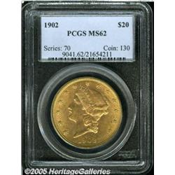 <B>1902 $20 MS62 PCGS.</B></I> Sharply struck with lovely pastel pink-rose and mint-green coloration, and a few grade-limiting contact marks on the obverse. The reverse is nearly blemish-free. Population: 123 in 62, 53 finer (2/05).