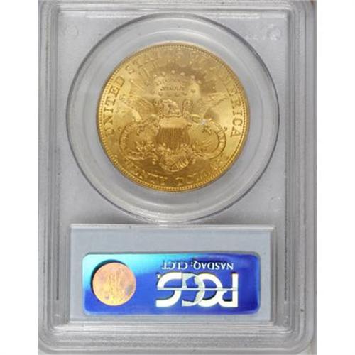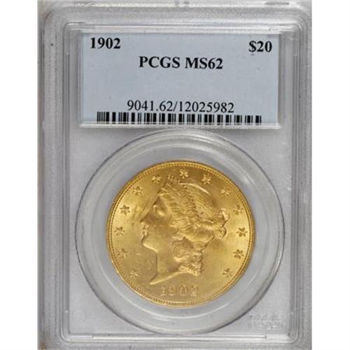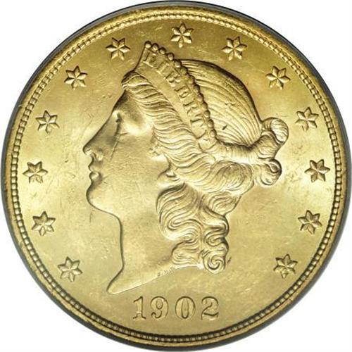 <B>1902 $20 MS62 PCGS.</B></I> This low mintage issue (31,140 pieces) is scarce in all grades, as is evident from the population data. Soft luster issues from the peach-gold surfaces of this specimen that displays a slight greenish-tan cast. Sharp definition is seen throughout the design elements. Some luster grazes and small marks are noted, especially on the obverse.<BR><BR><B>Coin Engraver:</B> James B. Longacre<BR><BR><b>Shipping:</b> Coins & Currency (<a target="_blank" href="http://www.heritageauctions.com/common/shipping.php">view shipping information</a>)