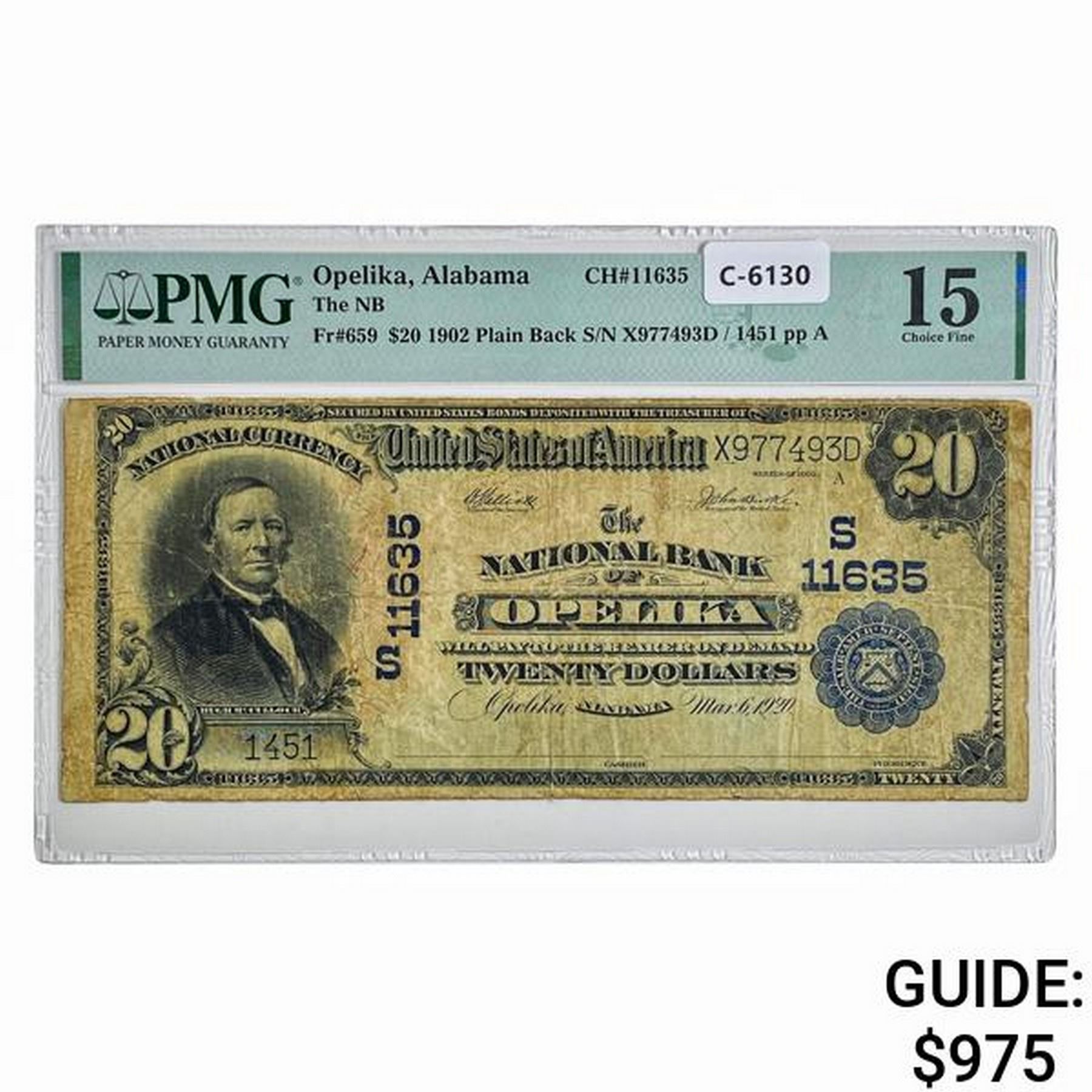 1902 $20 NB OPELIKA, ALABAMA CH. #11635 PMG F-15