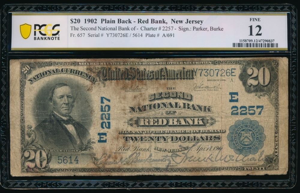 One 1902 $20 Red Bank NJ National PCGS 12.