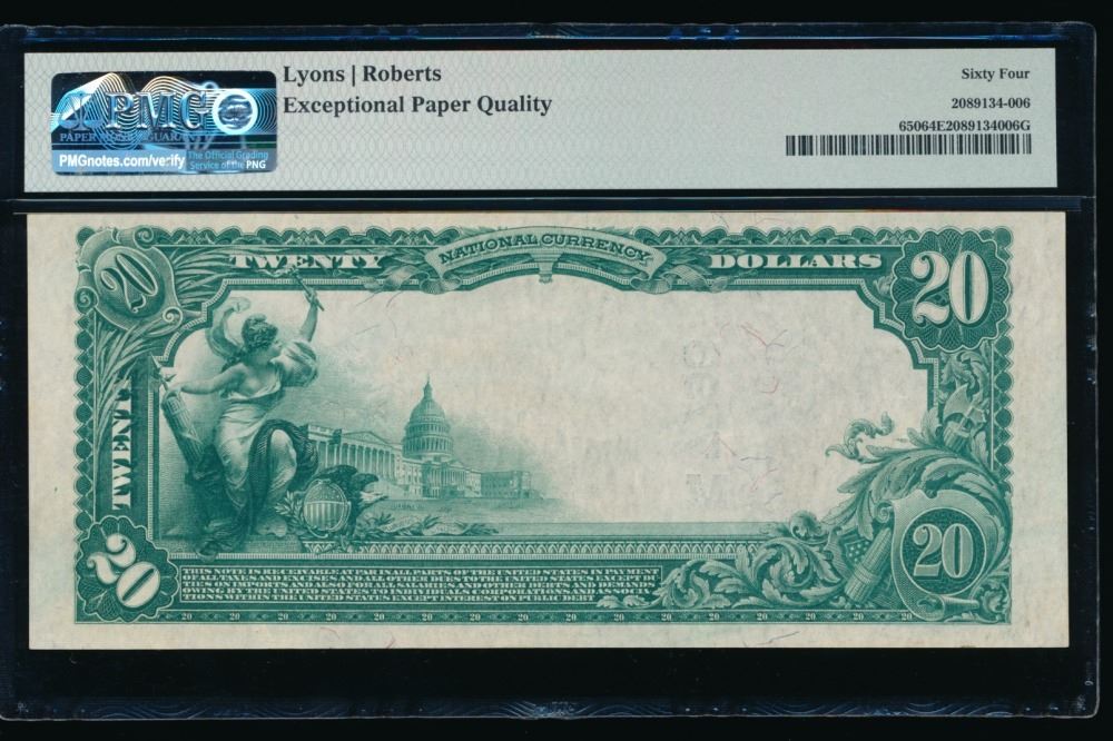 One 1902 $20 Tiffin OH National PMG 64EPQ.