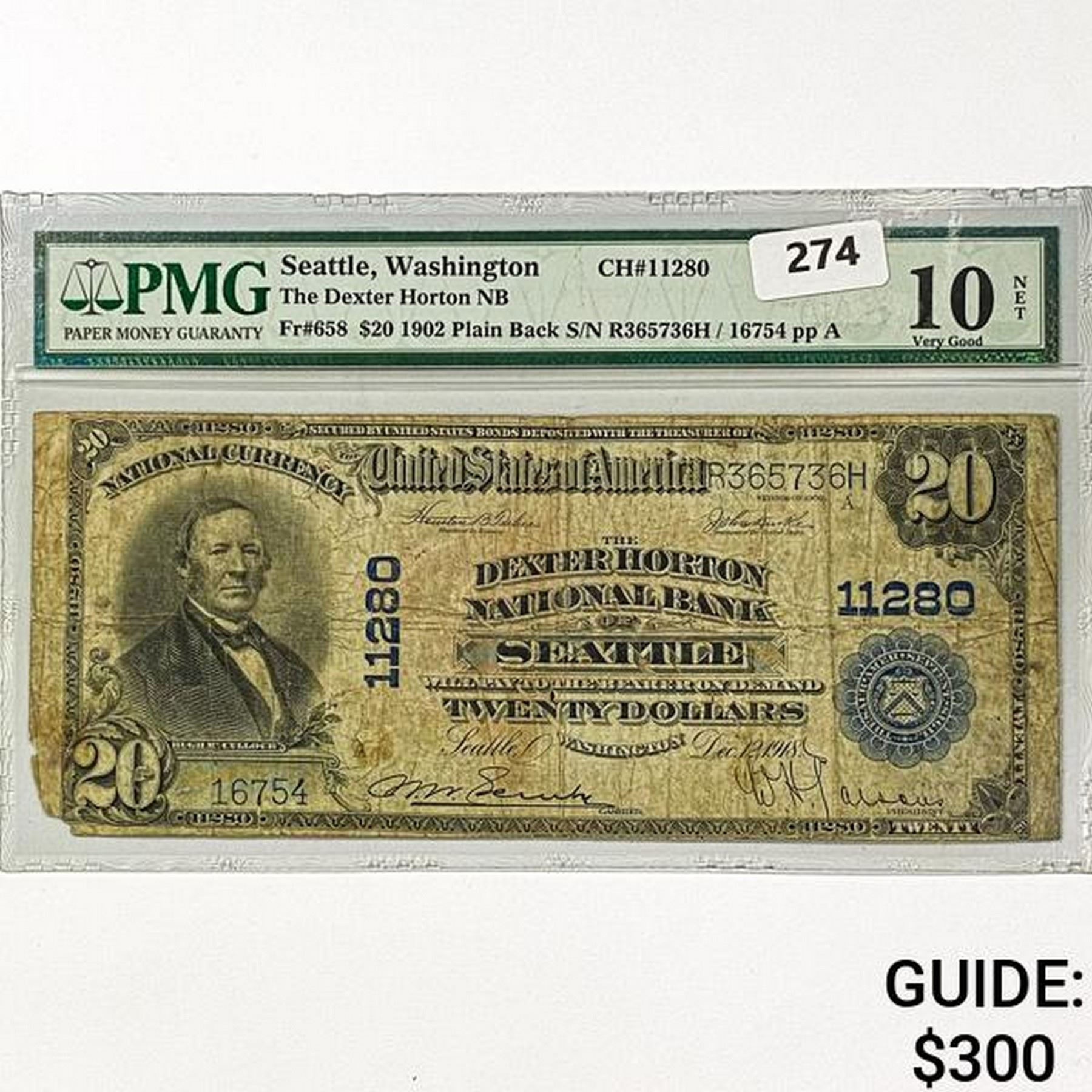 1902 $20 US LG Bank of Seattle WA Fed Res Note PMG