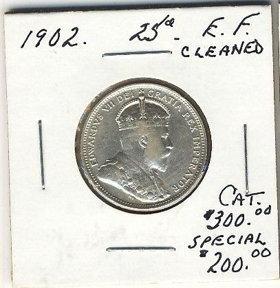 1902 25 Cents EF lightly cleaned. .