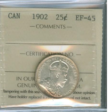 1902 25¢ ICCS EF45. White with lustre and light rim tone.