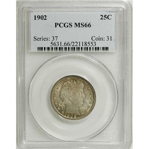 <B>1902 25C MS66 PCGS.</B></I> Speckled sea-green and reddish-gold toning gathers strength about the peripheral devices. The underlying, frosty surfaces exhibit a reasonably sharp strike and few appreciable abrasions. Population: 25 in 66, 2 finer (3/07).<BR><BR><b>Shipping:</b> Coins & Currency (<a target="_blank" href="http://www.heritageauctions.com/common/shipping.php">view shipping information</a>)