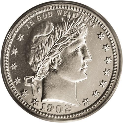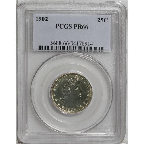 <B>1902<25C> PR66 PCGS.</B></I> Sharply struck with pale champagne toning over deeply mirrored surfaces. Both the fields and the devices were polished before the dies were placed into service, thus cameo contrast is nonexistent. This example is sharply struck and delightfully attractive. Population: 13 in 66, 5 finer (7/06).