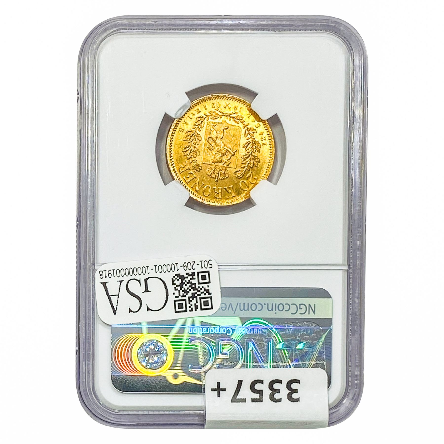 1902 .25oz Gold Norway 20 Kroner NGC MS65
