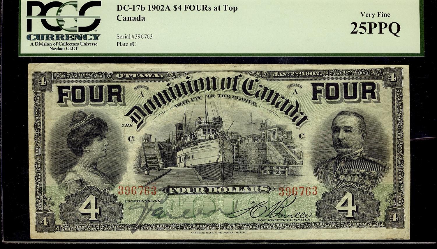 1902 $4 DC-17b #396763. PMG VF25PPQ.