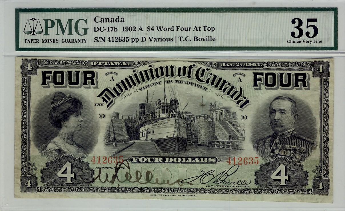 1902 $4 DC-17b #412635 PMG VF35 Tough to find in this condition. Rare