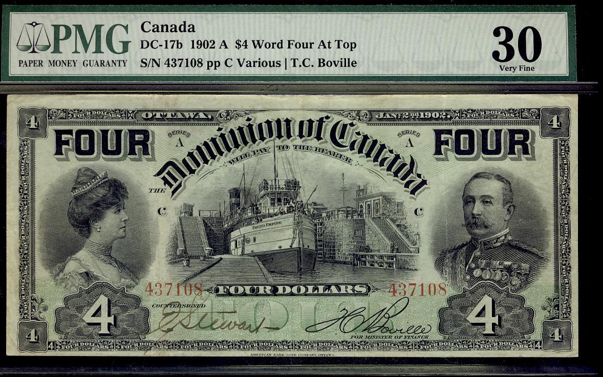 1902 $4 DC-17b #437108 PMG VF30.
