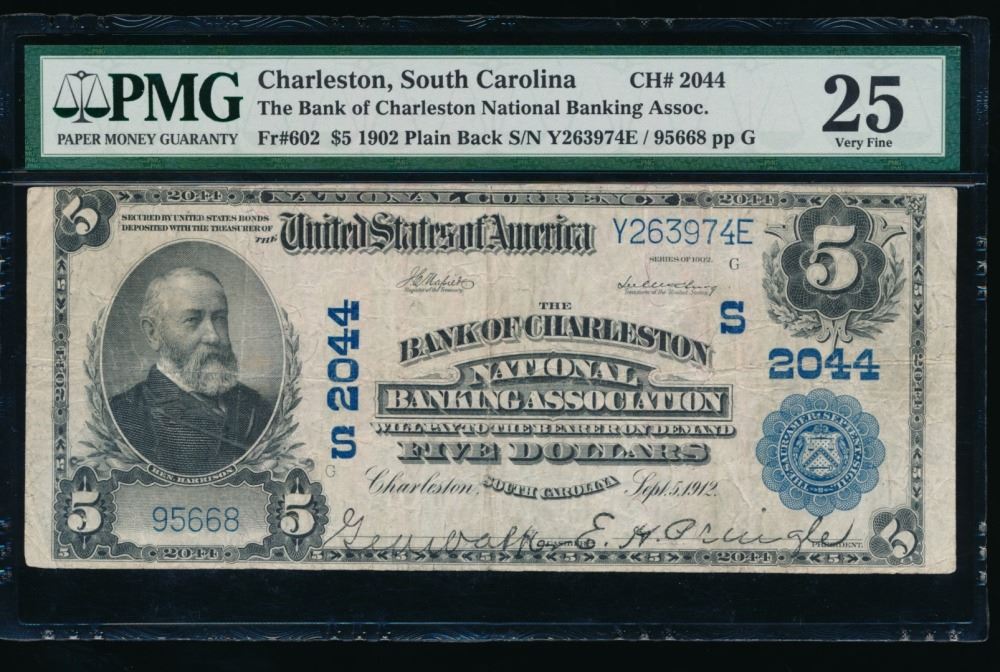 One 1902 $5 Charleston SC National PMG 25.