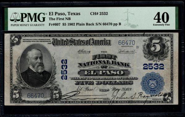One 1902 $5 El Paso TX National Bank Note PMG 40.
