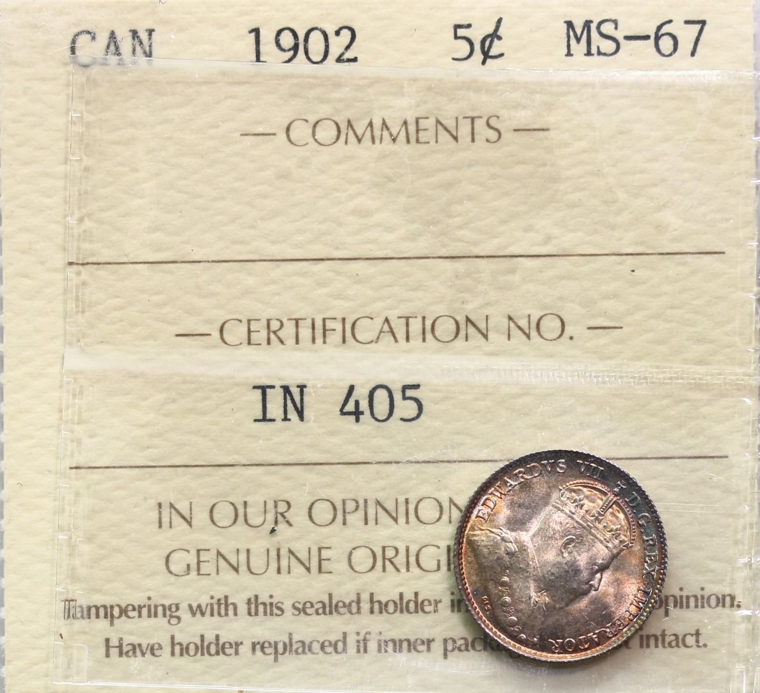 1902 5¢ ICCS Superb Gem Mint State-67 Amazing eye appeal and lustre. A splendid example.