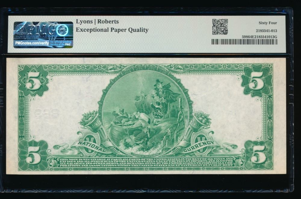 One 1902 $5 Indianapolis IN National PMG 64EPQ.