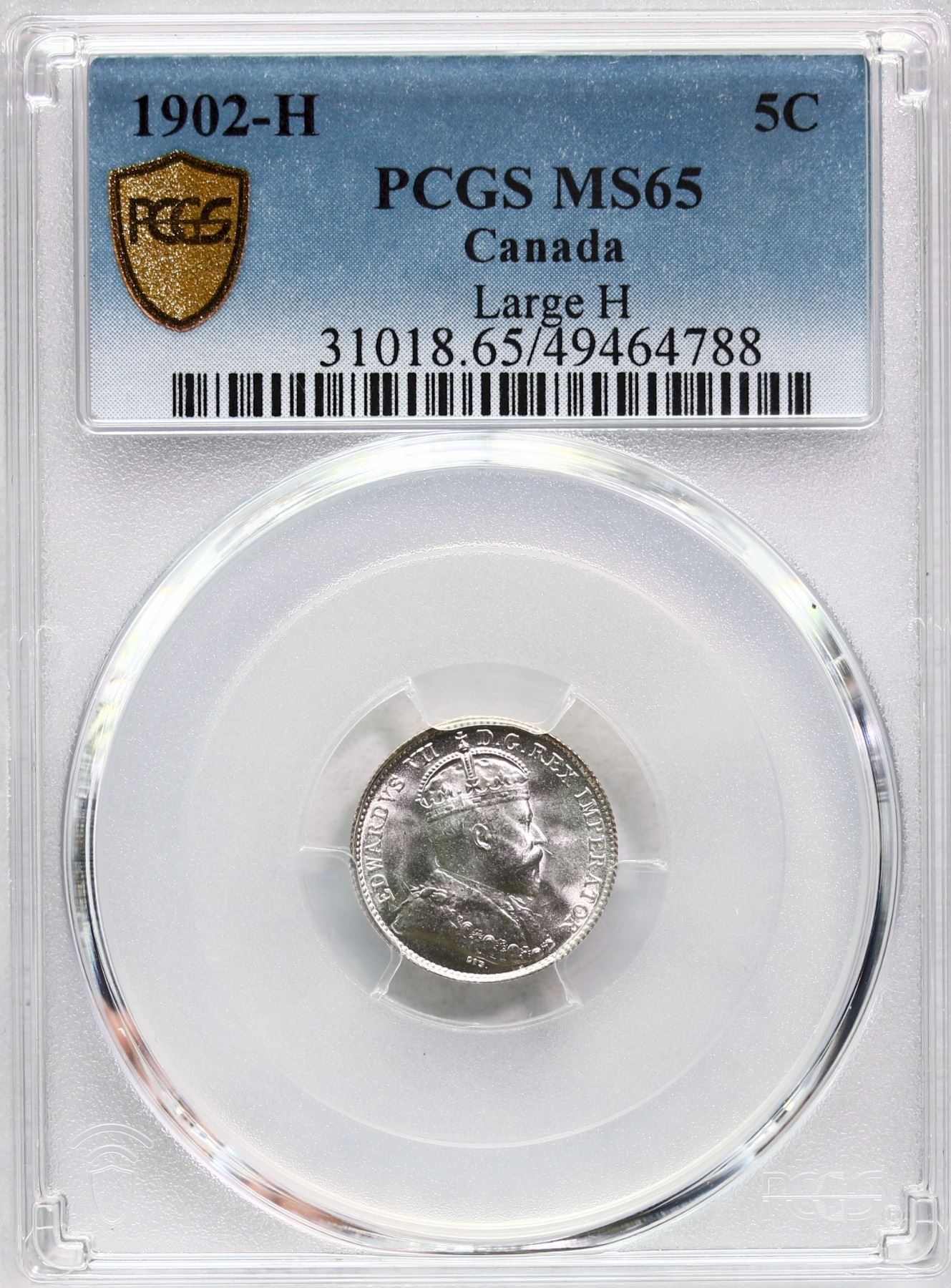 1902 5¢ "Large H" ICCS Gem Mint State-65 Blast white with great lustre.