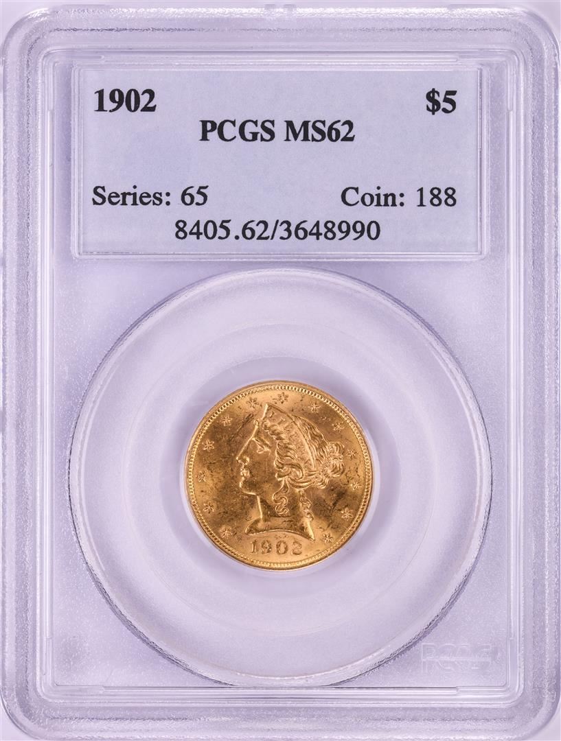 One 1902 $5 Liberty Head Half Eagle Gold Coin PCGS MS62. PCGS Graded.